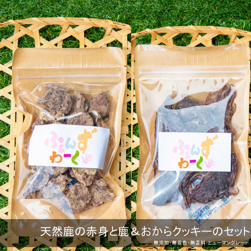 天然鹿の赤身と鹿&おからクッキーのセットは、健康的で美味しいおやつです。
